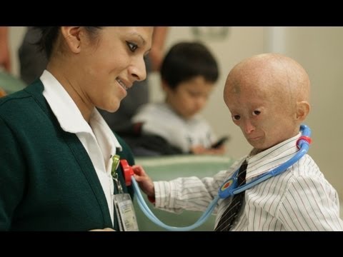 La palabra progeria se deriva del latin Pro que quiere decir a favor y geria que quiere decir anciano es una de las enfermedades más extrañas del planeta sólo existen al rededor de 90 casos en el planeta de los cuales la mayoría de los afectados se encuentran en el continente europeo, en México se han encontrado aproximadamente 3 casos uno de los más conocidos es de Elías, este es un vídeo donde se describe las condiciones en que se encuentra Elías
